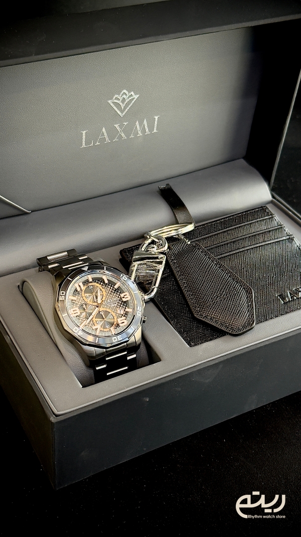 با خرید ساعت لاکسمی LAXMI 8184-4، شما نه تنها یک ساعت باکیفیت و کاربردی، بلکه یک جاکارتی و جا سوییچی چرم را داخل پک زیبای ساعت، می توانید به عزیز خود هدیه دهید.