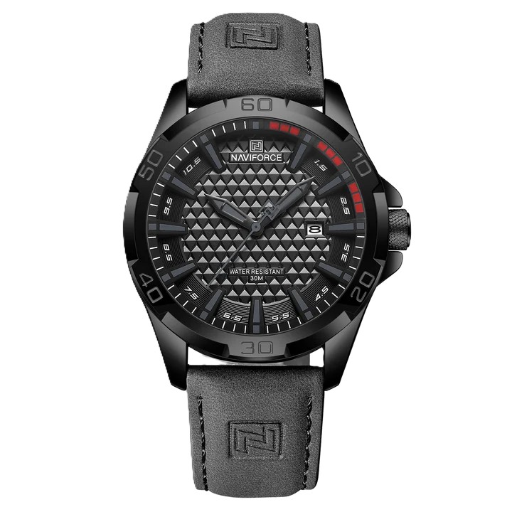 ساعت ناوی فورس مردانه مدل NF8023، شاهکاری از طراحی مدرن و صنعتی است که با طراحی بافت دار صفحه، خود را از مدل های ساده متمایز کرده است.